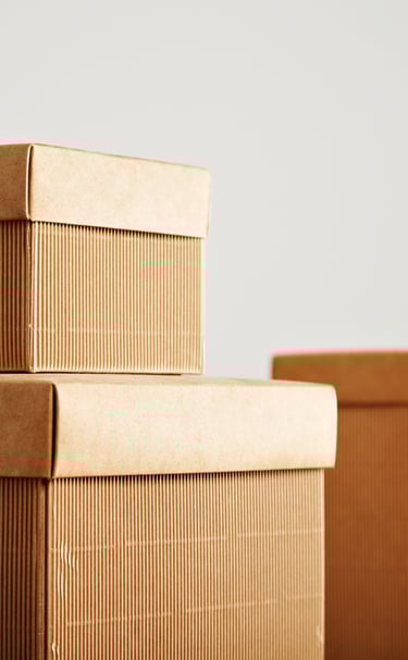 Cajas de Cartón Corrugado (Cartón): Comercializamos envases versátiles formados por varias capas de celulosa (capas planas y una capa ondulada central). Son ligeros, resistentes y reciclables, ideales para el transporte, almacenamiento y embalaje secundario de alimentos, productos electrónicos y bienes de consumo.
